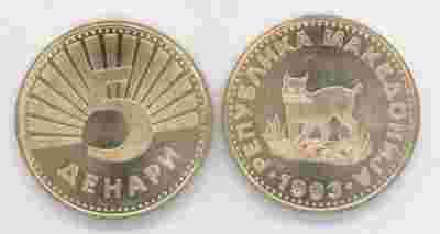 Macedonia 5 Dinari 1993r - mennicza
