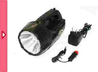Reflektor ładowalny wyposażony w dwa źródła światła: mocny halogen i ekonomiczne, jasne diody LED + światło ostrzegawcze z tyłu reflektora. Lekki i poręczny. Wodoodporny.
