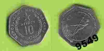 Madagaskar 10 ariary 1999 moneta francs UNC