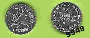 Madagaskar 1 franc francs 2002 moneta ariary