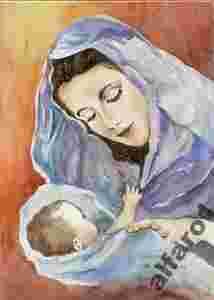 MADONNA Z DZIECIĄTKIEM--akwarela