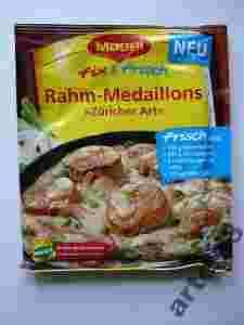Mam do zaoferowania Maggi Fix Medaliony ze śmietaną jest to oryginalny produkt przeznaczony na rynek niemiecki - JEDYNY NA ALLEGRO!!! Waga 43g Znakomicie nadaje się do medalionów podawanych w sosie śmietanowym z dodatkiem pieprzu nie zawiera wzmacniaczy smaku ani konserwantów Długi termin przydatności Sam korzystam nieprzerwanie z moich produktów i zapewniam, że gdy raz spróbujesz to nie wrócisz już do rodzimych wyrobów Towar jest nowy, świeżo sprowadzony z Niemiec, w 100% zgodny z wyglądem na zdjęciu.