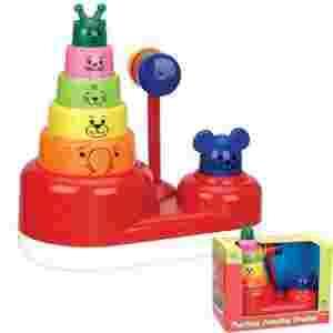 Piramida zaopatrzona w plastikowy młoteczek - po uderzeniu bezpiecznym młoteczkiem piramida sama rośnie, budząc radość Maluszka. po wciśnięciu myszki sama się składa.  Zabawka rozwija manualnie, psycho-ruchowo i wzrokowo. Intensywna kolorystyka. Myszka się uśmiecha i zaprasza dziecko do  wesołej zabawy.