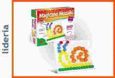 "Magiczne Mozaiki" to kreatywna zabawa dla dzieci, młodzieży i dorosłych.Do Waszej dyspozycjioddana zostaje plansza z mnóswem otworów, w których należyumieścić różnej wielkościkolorowe elementy, by stworzyć rozmaite wzoryi obrazy. Istnieje niemal nieskończona ilośćkombinacji, a po wykonaniu ilustracjiwystarczy,że wyjmiecie elementyi możecie zacząć od nowa.Do zsetawu dołączony jest album zawierający ponad 100 inspiracji, Zabawa ćwiczy kreatywność i wyobraźnię.Zestaw zawiera 200 kołeczków o śr. 23 mm-140 szt, 30mm- 60 szt.