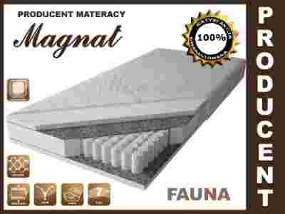 Prezentowany materac na tej aukcji to model Fauna. Jest to dwustronny materac, zbudowany ze sprężyn woreczkowych oraz pianki o podwyższonej twardości T-25T z obu stron materaca o wysokościach 3 cm.