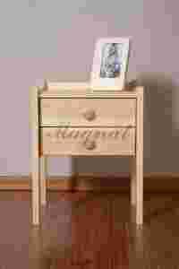 - Materiały.Szafka nocna wykonana jest z drewna sosnowego, polakierowana półmatowym lakierem bezbarwnym.