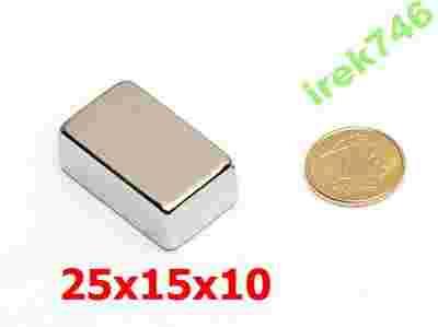 MAGNES NEODYMOWY 25x15x10 PŁYTKOWY NdFeB