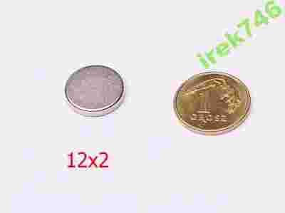 MAGNES NEODYMOWY WALCOWY 12x2 NdFeB Magnesy 12/2