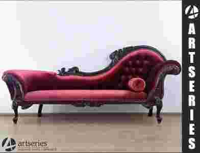 MAHONIOWA SOFA DREWNIANY SZEZLONG TAPICERKA