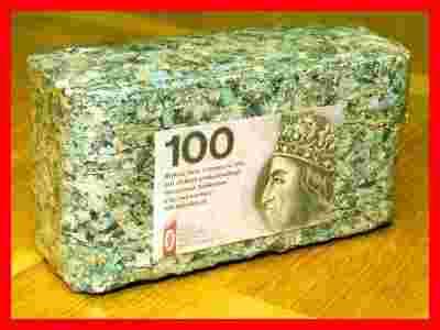 na aukcji oferuję nowy, nieużywany, zafoliowany brykiet powstały z 1000 prawdziwych nowych polskich banknotów 100zł wyprodukowanych przez Polską Wytwórnię Papierów Wartościowych S.A.