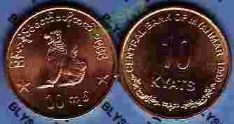 MAJNAMAR (BIRMA) /KM-62/ 10 KYATS 1999 r.Lew?