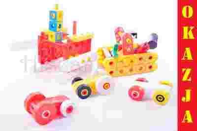 i doskonałą zabawę małemu majsterkowiczowi jednocześnie rozwijając jego zdolności manualne, wyobraźnię i kreatywność. Zestaw posiada, aż 95 elementów. Dziecko ma nieograniczone pole do popisu w konstrukcji różnych przedmiotów takich jak: