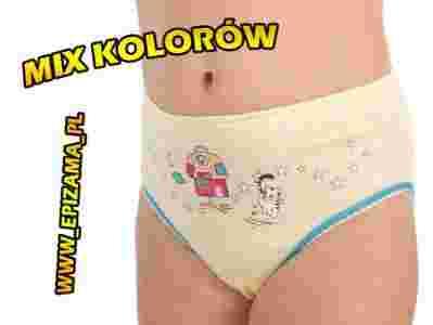 Figi w jasnych, pastelowych kolorach. Z przodu ozdobione ciekawym, fantazyjnym nadrukiem. Staranne wykończenie oraz bardzo dobra jakość użytej bawełny sprawia, że są komfortowe w noszeniu. Pakowane po 4 sztuki (każda w innym kolorze i innym nadrukiem).
