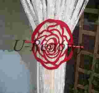 Wzór ten jest uniwersalny - klamrą tą można upinać zarówno cienkie tkaniny (patyk wbijamy wtedy w otwory bliżej środka) jak również grubsze, lub np. duże ilości cienkiej firany.