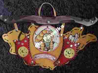 materiał: skóra drewno, metal