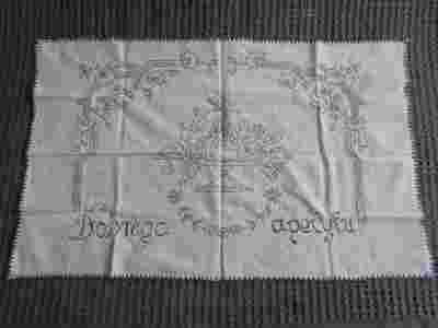 Makatka z niebieskim haftem - " Dobrego ...