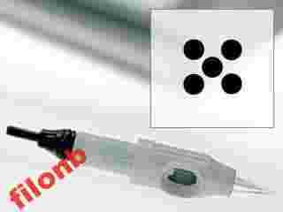 Kształt igły został zaprojektowany w taki sposób aby uzyskać jak najwyższą precyzję w umieszczaniu barwnika w skórze, przy jak najmniejszych urazach.