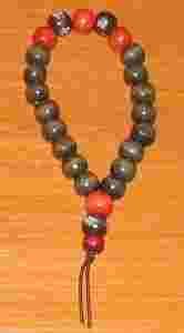 są też korale ciemno-brązowe z napisami chińskimi oraz 4 czerwone.
