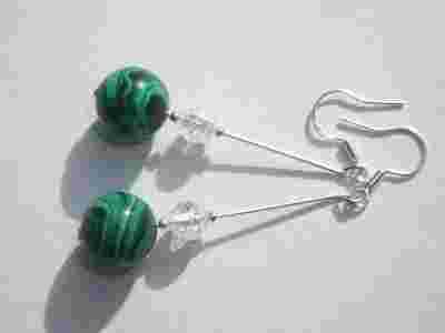 MALACHIT I KRYSZTAŁ -25-KOLCZYKI-SREBRO PR.925-