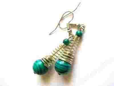 Kolczyki MALACHIT W SPRĘŻYNKACH wykonane przez artystę plastyka