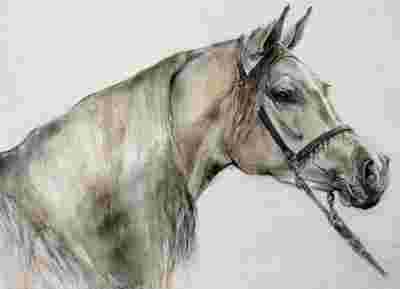 malarstwoPORTRET KONIE KOŃ ARABSKI akwarela pastel