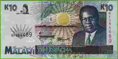 MALAWI 10 Kwacha 1995 P31 BF UNC Ptak Ryba