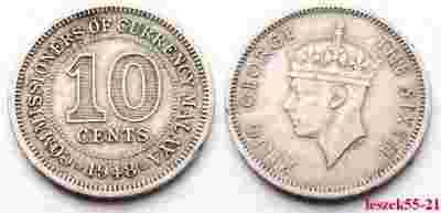 MALAYA 10 CENTS 1948 GEORGE THE SIXTH