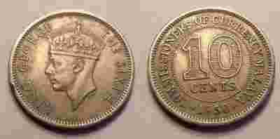 Malaya, 10 cents, 1950 r.
