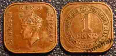 MALAYA 1 CENT 1939r GEORGE VI / 230 C