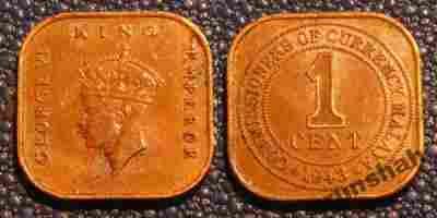 MALAYA 1 CENT 1943r GEORGE VI / 200 C