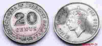 MALAYA 20 CENTS 1948 GEORGE THE SIXTH