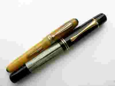 PIÓRO WYKONANE JEST Z TRADYCYJNEGO CELULOIDU W KOLORZE CIEMNEGO ECRU - ŻÓŁCI, CHARAKTERYZUJE SIĘ KLASYCZNĄ FORMĄ ALE JEST DUZO MNIEJSZE OD STANDARDOWYCH. W ZAMKNIĘTEJ DŁONI CHOWA SIĘ CAŁKOWICIE. DLA PORÓWNANIA NA JEDNYM ZE ZDJĘĆ UMIEŚCIŁEM PIÓRKO PELIKAN.