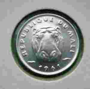 MALI 5 FRANCS 1961 - HIPOPOTAM ZWIERZĘTA HOLDER @@
