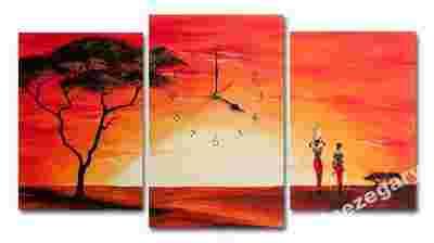 MALOWANY ZEGAR ŚCIENNY TRYPTYK AFRYKA Orient