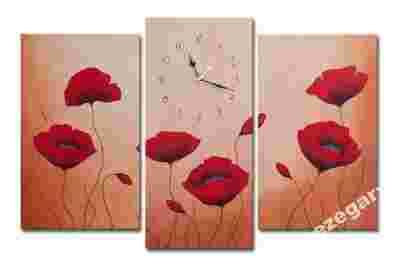 MALOWANY ZEGAR ŚCIENNY TRYPTYK MAKI kwiaty