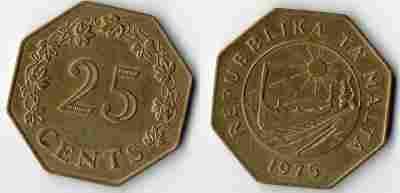 MALTA 1975 25 CENTS