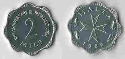 MALTA 1982 2 MILS 10-LECIE DECYMALIZACJI B. RZADKA