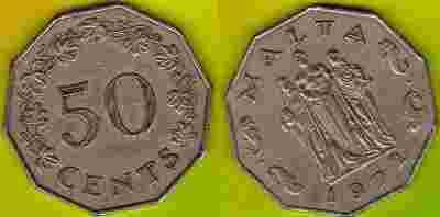 MALTA 50 Cents 1972 r.