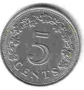 MALTA 5 CENTS - KM#10 1972