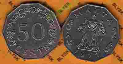 MALTA /KM-12/ 50 CENTS 1972 r. Wielokątna Rybki