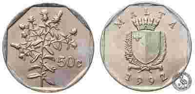 Malta - moneta - 50 Centów 1992 - MENNICZA
