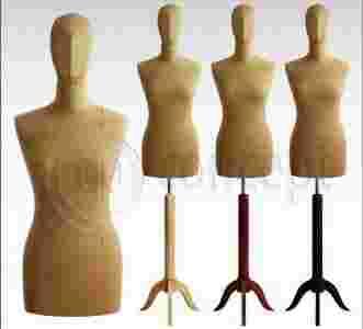 Tors osadzony jest na eleganckim drewnianym stojaku z chromowaną rurą, na której można regulować wysokość manekina pokrętłem.