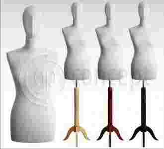 Tors osadzony jest na eleganckim drewnianym stojaku z chromowaną rurą, na której można regulować wysokość manekina pokrętłem.