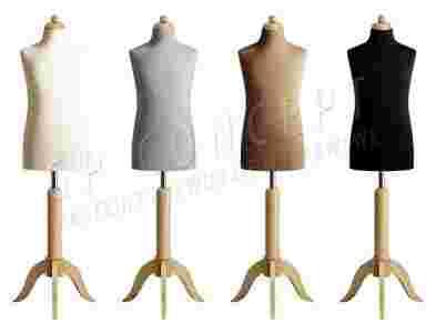 Tors osadzony jest na eleganckim drewnianym stojaku z chromowaną rurą, na której można regulować wysokość manekina przy pomocy regulatora.