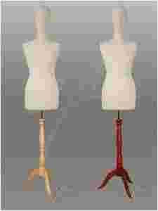 Tors osadzony jest na eleganckim drewnianym stojaku z chromowaną rurą, na której można regulować wysokość manekina pokrętłem.