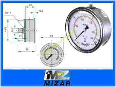 MANOMETR FI 63 BSP 1/4 TYŁ ZAKRES 0-100 BAR WIKA