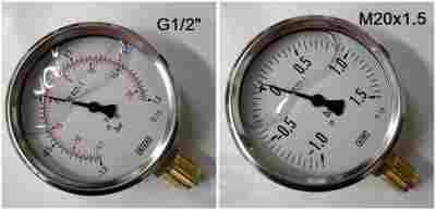 Przedmiotem sprzedaży są mano-wakuometry glicerynowe przemysłowe o średnicy tarczy 100mm przyłącze radialne dolne gwint calowy G1/2 lub gwint metryczny M20x1,5