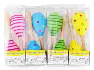 Marakasy to instrument muzyczny , którego korpus wykonany jest z drewna i osadzony na drewnianym trzonku. Wewnątrz znajdują się koraliki wydające charakterystyczny dźwięk przy potrząsaniu. Zabawka rozwija talent muzyczny i zapewnia wspaniałą zabawę dla początkującego muzyka. Fantastyczna kolorystyka i estetyczne wykonanie sprawiają że marakasy doskonale nadają się na upominek dla maluchów.