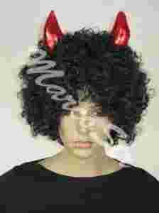 NOWA PERUKA + ROGI DIABEŁ CZARNA KRĘCONA