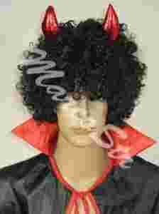 NOWA PERUKA + ROGI DIABEŁ CZARNA KRĘCONA